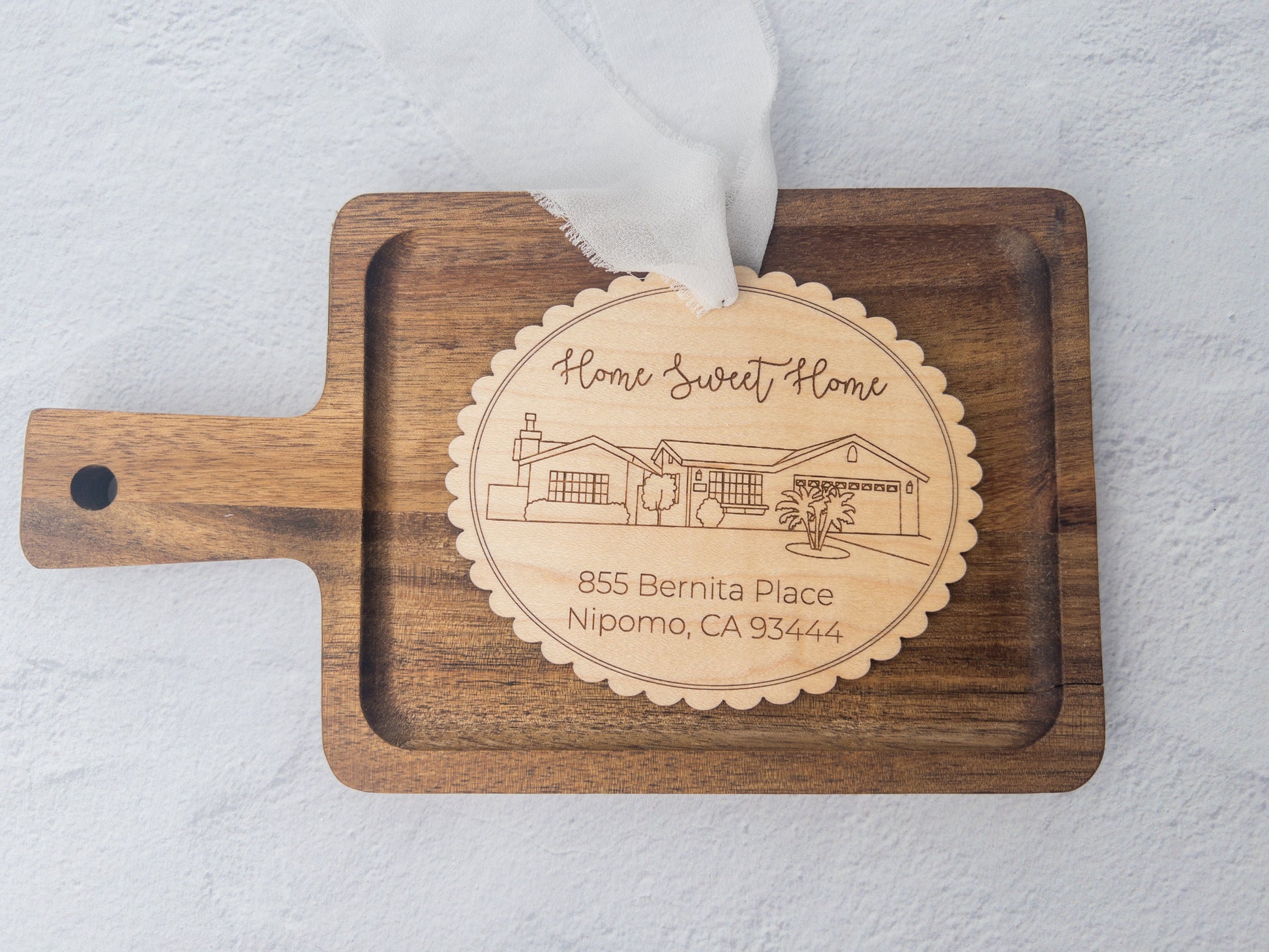 Celebrate a milestone that deserves more than a standard gift. Our ornaments are individually illustrated from your photo, then laser engraved into wood for a timeless keepsake that feels as special as the home it represents.