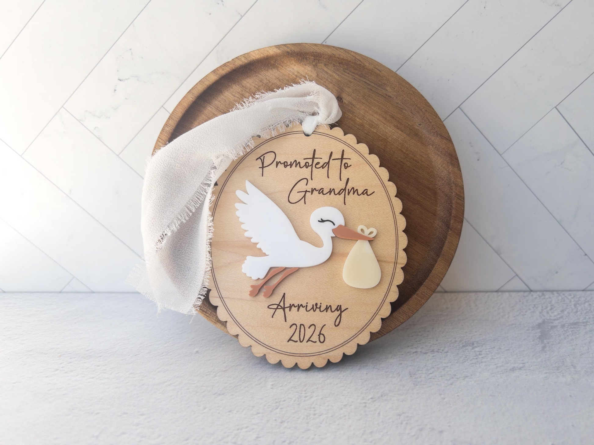 Celebrate life’s sweetest milestone with our engraved stork baby announcement ornament. Perfect for baby showers, gender reveals, or gifting proud new grandparents, this keepsake is customized with your baby’s details and designed to be cherished for years.